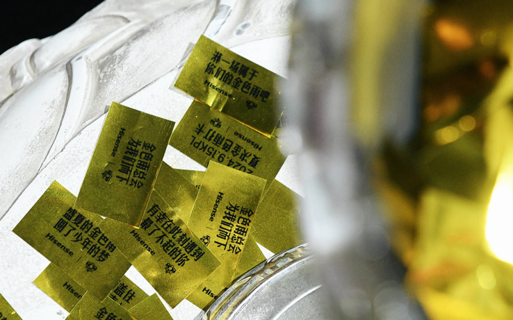 以及从前十多少多届联赛总决赛差距,这一次的金色雨上初次印制了粉丝应援语录,同时还泛起了扶助商之一海信的标识。赛后,不光是现场的不美不雅众,良多使命职员也弯腰捡起了金色雨。社交媒体上,良多未能到决赛现场不美不雅赛的不美不雅众则在到处讯问金色雨的取患上道路。