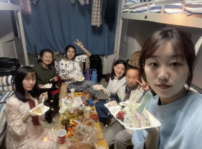 张计玲:咱们是6人世,都是一个班的。往年3月份,一个小室友过生日,巨匠在睡房美美聚了一餐,吃烧烤,分蛋糕。我将聚餐照片发到网上,有网友品评,“太侥幸啦。”我回覆:“我被良多小玉人溺爱着。”