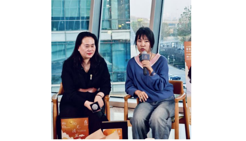 郝俪(左)向葛影琼赠予《有光女孩》。