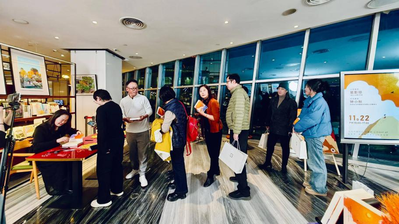 行动停止后,葛影琼为现场激情的读者拦阻了签售。队伍排拦阻龙,读者们手捧新书与作者交流。