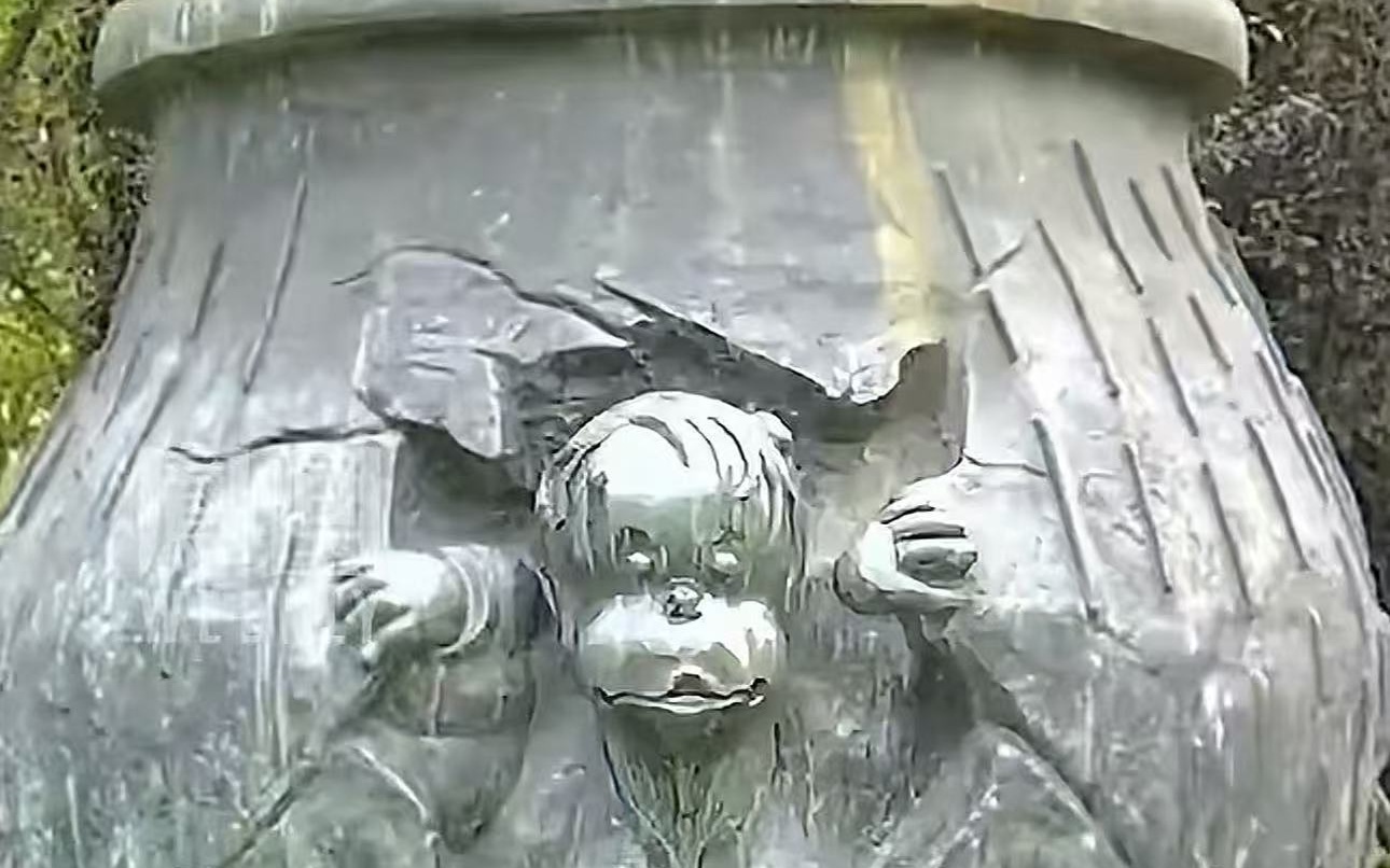 “司马光砸缸”的典故是教科书中的典型故事。作为传统横蛮中揭示儿童智慧与斗胆的典型,不断以来都承载着教育儿童自动面临难题、机敏斗胆处置下场的意思。但这组雕塑却用了将儿童塑造为“猴像”的艺术本领,多少多多有些让人摸不着脑子。