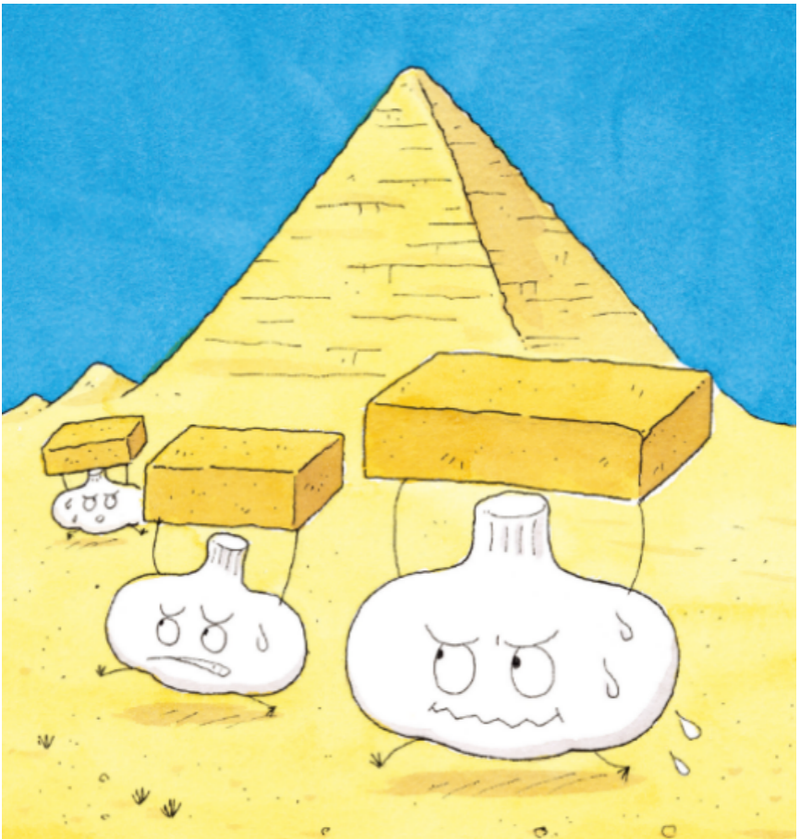 传说工人们为埃及法老修筑金字塔时,法老天天都市发给工人们大蒜以及洋葱等食物作为酬谢。