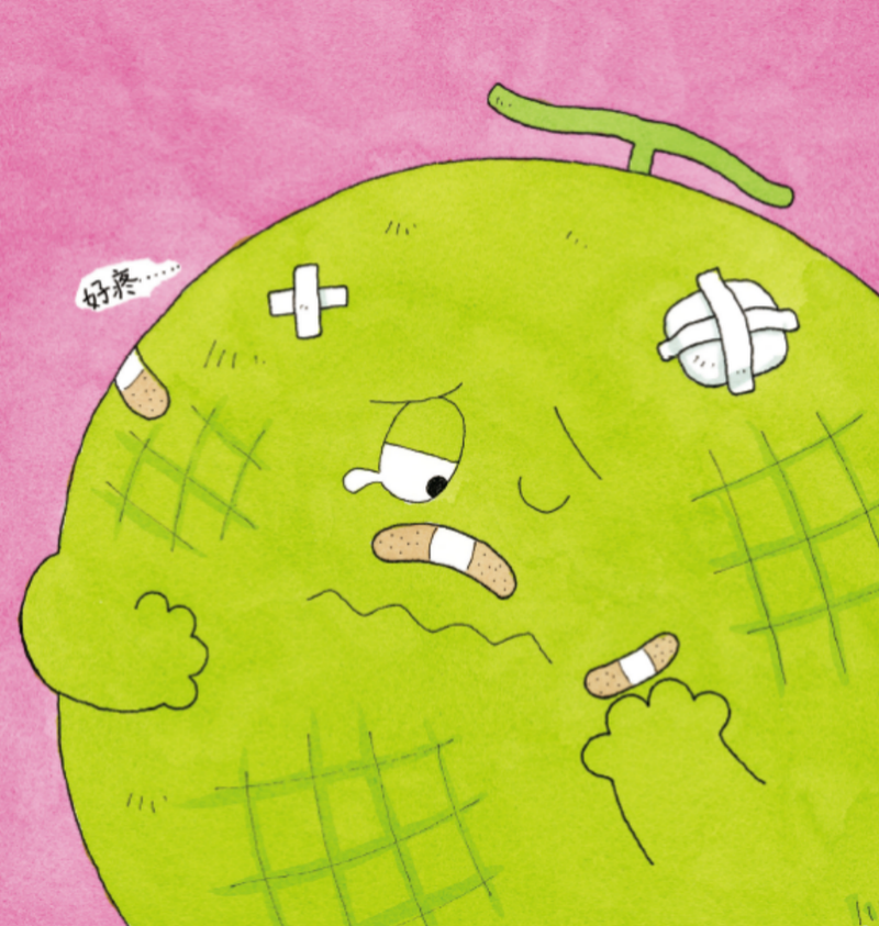 蜜瓜委屈兮兮,头上贴着绷带,是由于它们的拦阻需要不断地缝合伤谈锋有了道道疤痕。