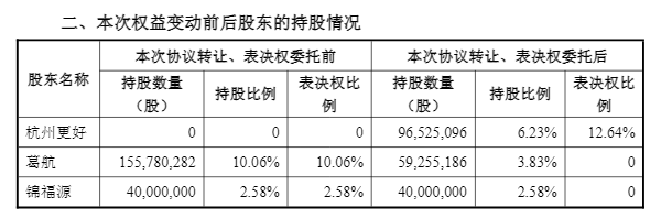 同日,双方进一步约定,葛航将其持有的公司股份(约占公司总股本的10.06%,收罗拟协议转让的股份)所对于应的全副表决权拜托给杭州更好运用。