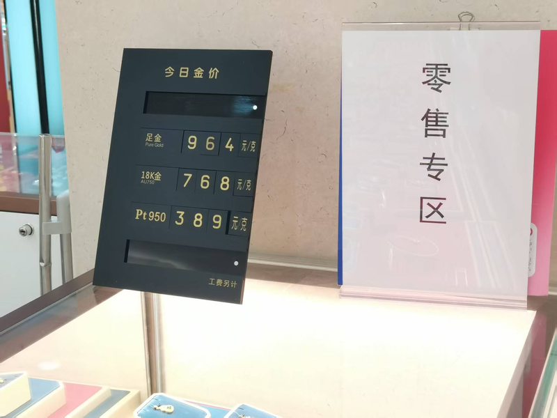 10月22日,北京天雅珠宝城足金报价964元/克。最新往事贝壳财经记者 徐雨婷 摄