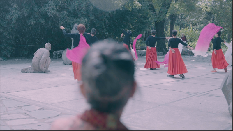 张洁英看公园早年舞蹈队晨练。