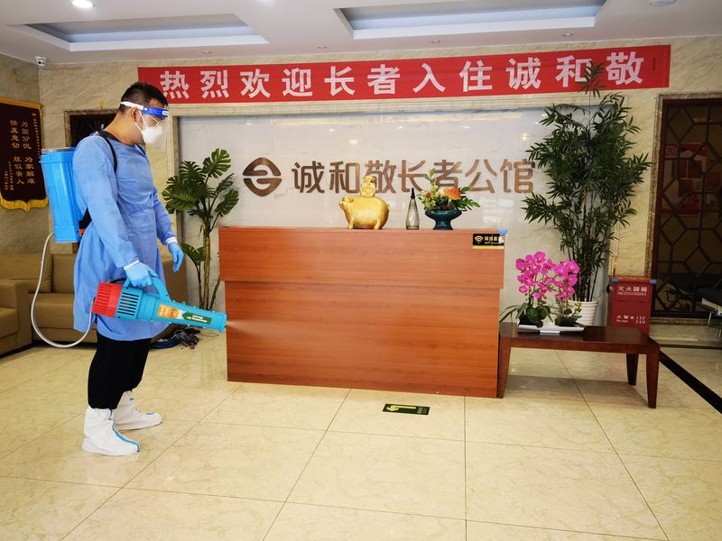 养老院封锁规画后,使命职员天天定时消杀。 受访者供图