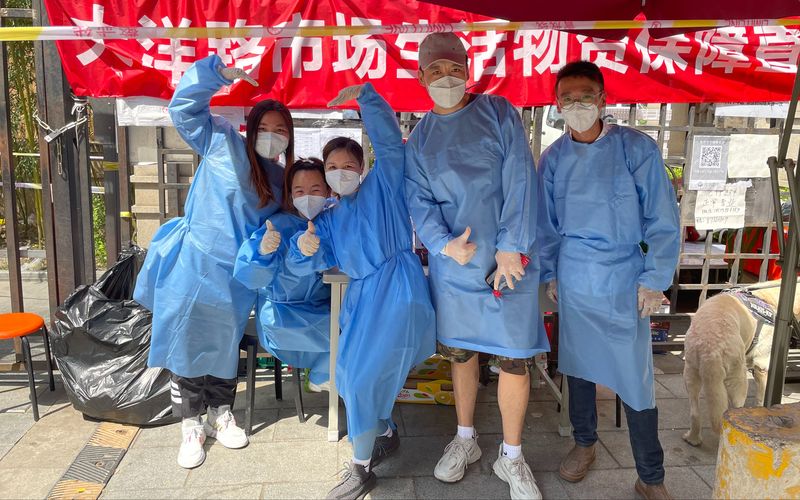 北京的温度逐渐俯冲,最高温度能抵达30℃。小区的买菜点不任何遮挡,为了保障无干戈运送物资,举菜团被迫者们需要衣着防护服,接受阳光的烤晒。“举菜团”居夷易近被迫者张晓鹏说:“衣着防护服,一天下来,概况的衣服都能拧出水来。”