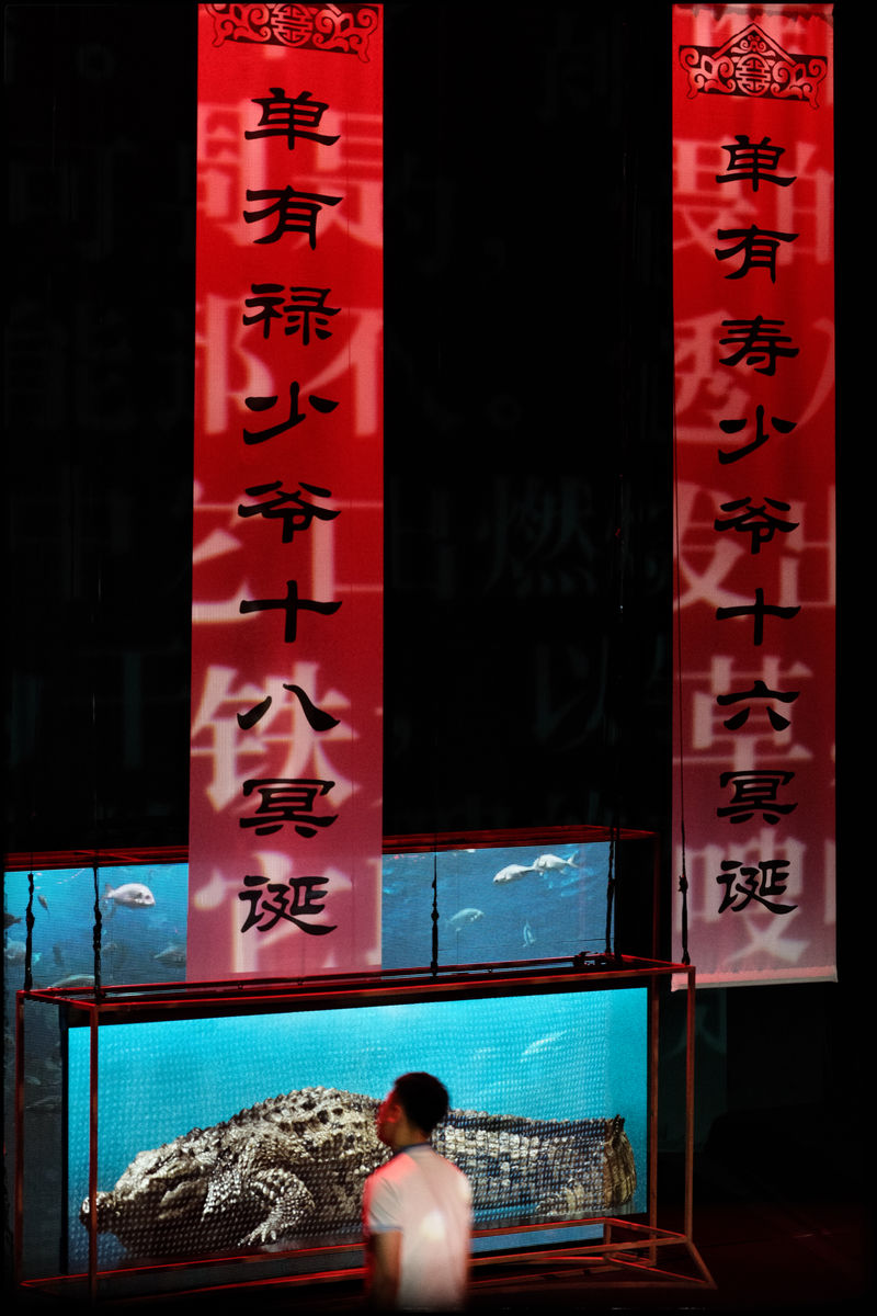 《鳄鱼》中最使人印象深入的一场戏可能算是全剧结尾,最后赵文瑄饰演的单无惮贡献了一大段长达12分钟的独白。王可然用了种种处置方式来增强这场戏的表白,好比身处在剧场通道的演员们专长电光“逼视”不美不雅众的眼睛,演员们从不美不雅众席中登台,在不美不雅众身旁饰演;用手电筒映射舞台上的单无惮,也将光束射向不美不雅众,彷佛也在揭示着不美不雅众,难以有人可能在此置身事外,此时事部剧场都酿成为了舞台,从单无惮身上看到“鳄鱼”,也看到自我。在王可然看来,尽管手电筒是一个颇为传统的工具,可是用这样一个小小的措施,可能把整场不美不雅众以及演员的心田照亮,把窥探愿望的神色拉满,这即是剧场性一个极小的微乎其微的细节揭示,“不需要用严正的技术,用好的技法能耐构建严正的激情与神色。”