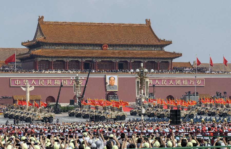 战鹰咆哮,振翅长空。预警指挥机、特种机、运输机、轰炸机、加受油机、歼击机、舰载机等地面梯队挨次地面飞过天安门广场,受阅的预警侦探、短途侵略、制空作战、策略投送、营救保障等机型,成零星揭示我军快捷提升的地面作战能耐。教练机梯队拉出14道彩烟,寓意着中华夷易近族14年可歌可泣的抗战历程,象征着14亿多中国国夷易近奔向强国复原的黝黑远景。