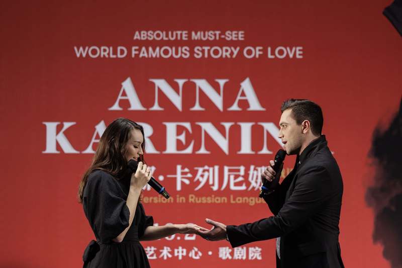 俄罗斯音乐剧《安娜·卡列尼娜》主创在北京艺术中间与媒体以及粉丝同伙亲密交流。 供图 国家大剧场