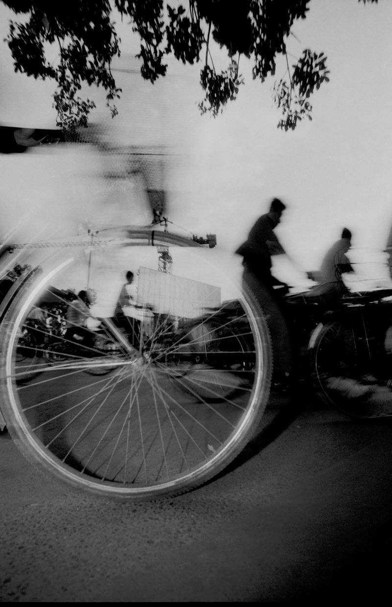 “舞蹈的街道”则是莫毅在实现“我是流离狗”三年之后拍摄,虽接管了相似的镜头角度,但拍摄妄想以及神色却清晰差距。比起“我是流离狗”,这组作品更能转达昼夜交替时都市的脉动。自行车是这个时期到处可见的交通工具,这也是其成为该系列拍摄主题的原因。