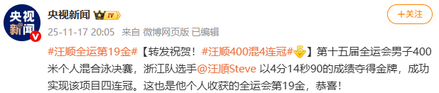 内容摘要:据央视往事微博新闻,第十五届全运会女子400米总体混合泳决赛,浙江队选手汪顺以4分14秒90的下场夺患上金牌,乐成实现该名目四连冠。这也是他总体收获的全运会第19金。编纂 李忆林子