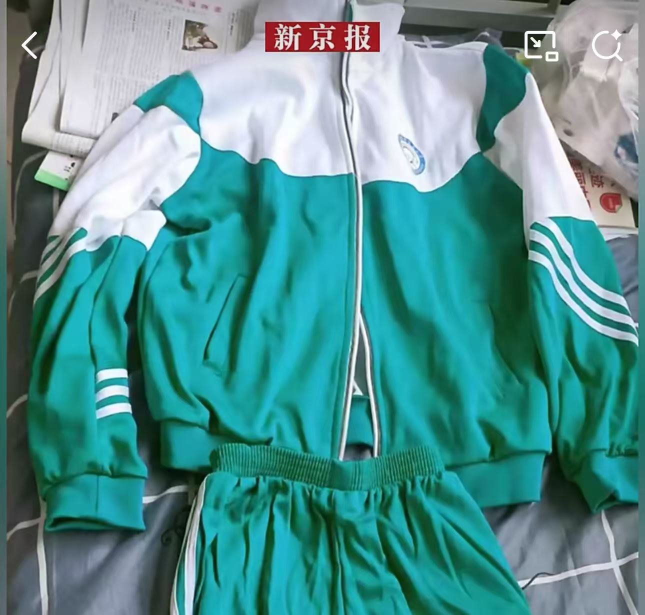 ▲因在网上反映儿子学校校服存在品质下场,邓开国被行政扣留七天。校服图/最新往事微博视频截图