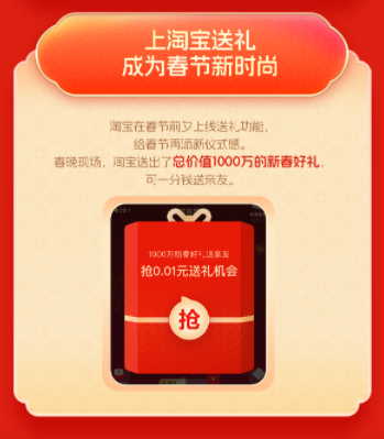 ▲淘宝在春节前夜上线了“送礼物”功能。图/最新往事质料图