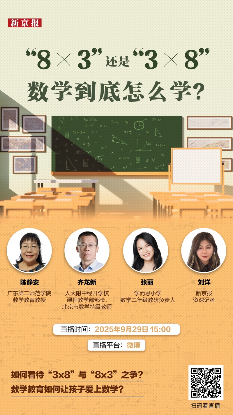 作为北京市特级教师,齐龙新为网友们批注这一下场时,像教学生同样谆谆教育。他进一步阐释,教师判错“3×8”并非机械实施纪律,而是基于教育逻辑的深意妄想。“二年级学生刚从加法过渡到乘法,最需要的是将抽象算式与详细情境建树分割。”他以学习认字作比,“必需先懂每一个字的寄义,能耐精确组词造句。”