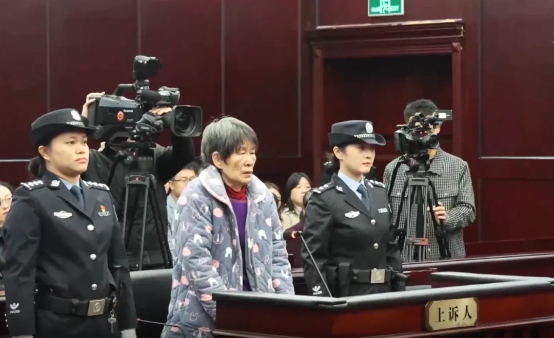 ▲质料图:余华英此前受审画面。图/新华网客户端视频截图