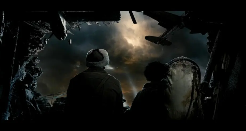 “雪拆穿困绕了如网般犬牙交织的战时的道路,拆穿困绕了硝烟以及污泥……积雪下醒觉着强人以及弱者、怯夫以及怯夫、侥幸的人以及可怜的人。这不是雪,而是光阴自己。清白而又柔软的光阴一层层地聚积在人类酣战的都市废墟之上。如今的所有正在酿成从前。在这场逐渐飞翔的大雪中看不见未来。”