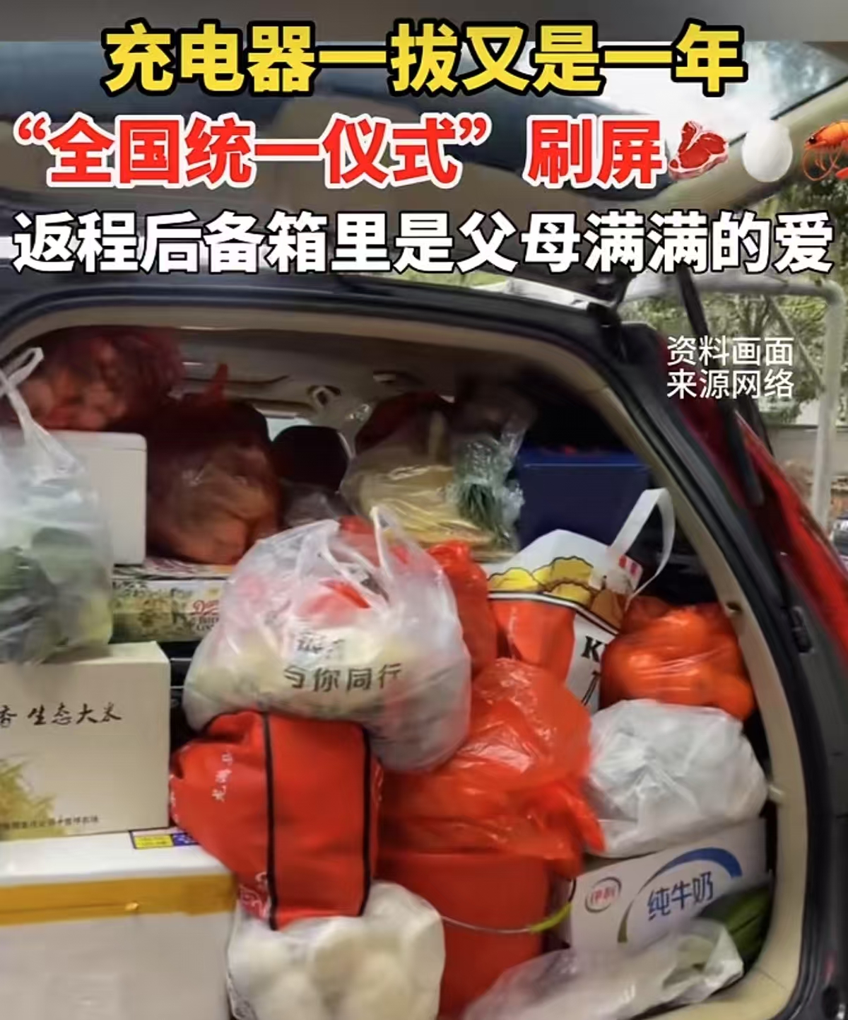 这些看似艰深的后备箱,实则承载着怙恃沉甸甸的爱,看着暖心,但又扎心,良多网友看到这些同款后备箱图片都纷纭揭示“泪目了”。这是属于2025年这个春节的影像,是年迈怙恃逾越山水的记挂,无声却滚烫。