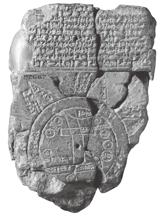 巴比伦天下舆图,公元前 6 世纪,泥板。《地球是若何奈何样样变圆的》插图