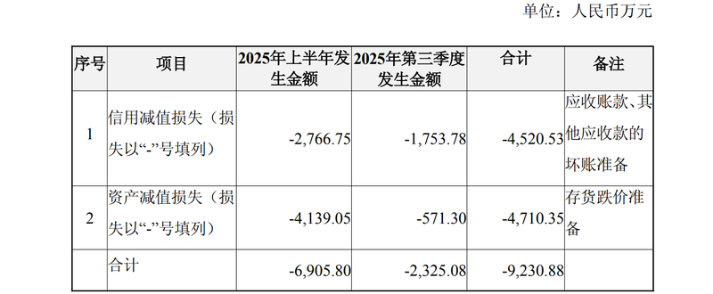 数据揭示,往年第三季度,该公司因计提应收账款坏账豫备及其余应收款坏账豫备而确认信誉减值损失1753.78万元,因计提存货减价豫备而确认资产减值损失571.3万元。