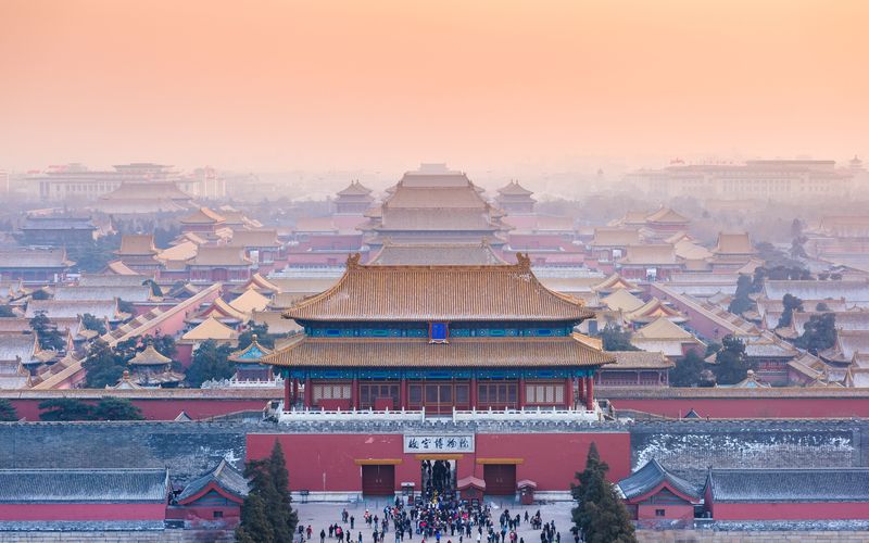 从景山公园鸟瞰故宫,中轴线清晰可见。张若天 摄/IC photo