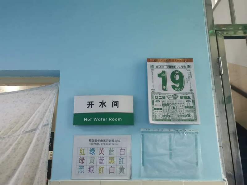 2022年8月19日,北京早年医院肉体神思一科病房,墙上贴着提防早年智慧的磨炼措施,说出字的颜色,而不是说出这个字念甚么。最新往事记者 朱清华 摄