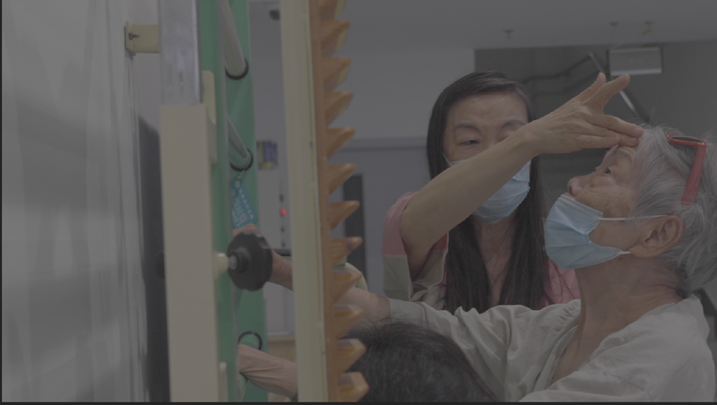 在采访的历程中,钱奶奶再次提出上茅厕,这回金娜规画让她换个位置坐。她面临钱奶奶站着,双手架着奶奶的双侧胳膊,喊“一二三”,把钱奶奶从轮椅上扶着站起来,“左腿站直了吗?好”奶奶的左腿已经不知觉了,金娜用自己的腿抵住奶奶的左腿,再数着“一二一二”的节奏,向导右腿飞快挪移,同样艰深一米的距离,要数三个节奏。
