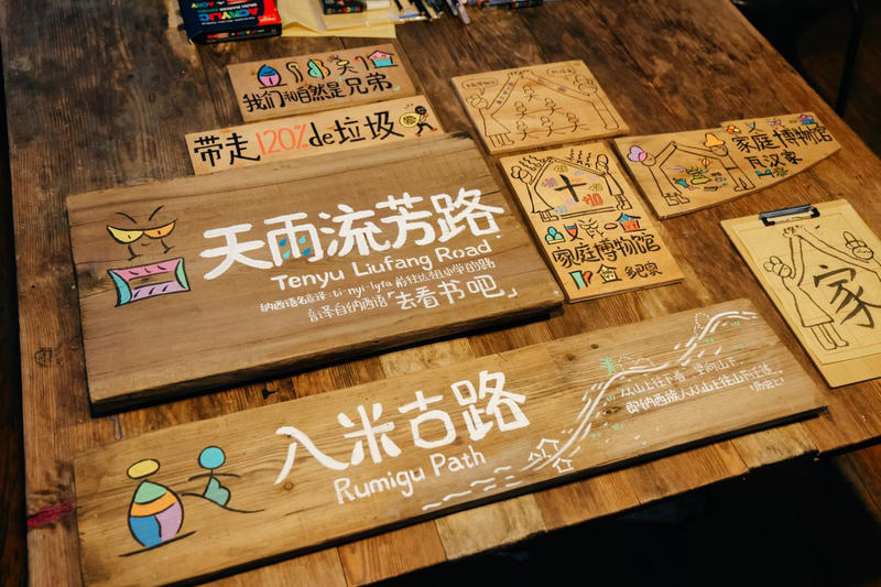 “达祖村落子缺少路名以及路标的指引,游客来了都不知道若何奈何样样飞翔。”针对于这一顺境,文旅组的创作者们把目力落在了纳西语上。“通往达祖小学的路,叫 ‘天雨流芳路’,音似纳西语‘去看书吧’( ti-nyi-lyfa);挨近湖边的路叫‘很知足路’,由于达祖人称谓泸沽湖畔为‘he-man’。”小红书创作者@奶字编纂部说,“咱们想做真正的路书,游客每一记住一个路名,就记住了一句纳西语,浏览了一本纳西路书。”与此同时,平台创作者@王惜患上与@村落子野含含子妄想的街巷导视零星,也逾越了功能性标识,成为散落在村落子子中的横蛮线索,向导游客从“途经”转向“沉浸”。