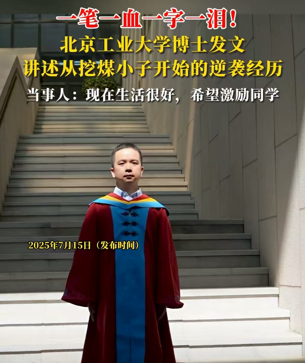 如今,这位有着博士头衔的“挖煤小伙”婉拒媒体采访、不需要行动偏激的表彰,是他低调、凋敝与谦厚的品性使然,但社会理当让这样的励志叙事更普遍地转达开去。