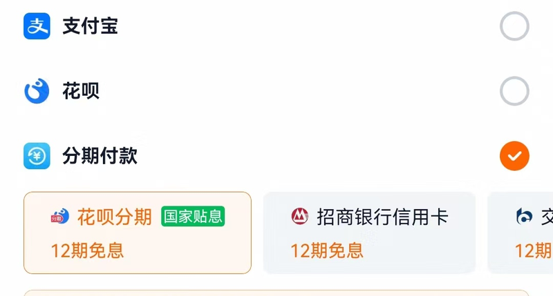 在电商平台支出界面,除了银行卡支出方式外,尚有花呗、京东白条等支出方式。其中,在淘宝平台,部份手机类商品运用花呗支出可享受12期免息,京东商城的京东白条也推出破费贴息福利。