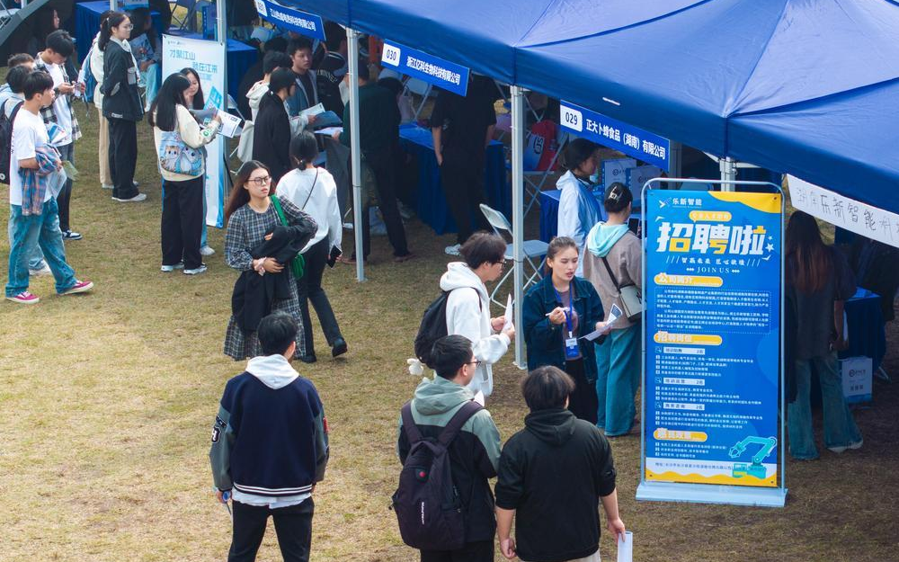 ▲质料图:10月29日,某高校行动场内的定尺度否应聘会现场。图/新华网