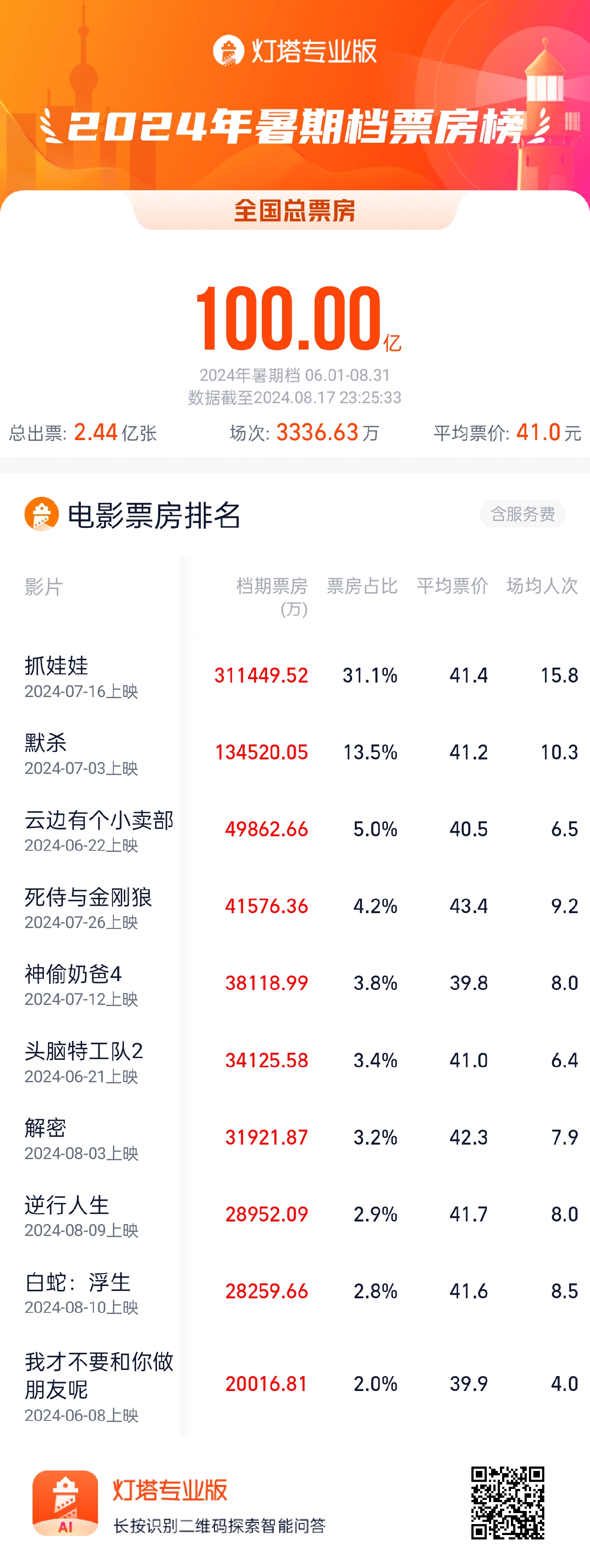 最新往事讯(记者周慧晓婉)据灯塔业余版实时数据,暑期拦阻8月17日23时25分,档票Instagram聚合聊天窗口(TG:@dolphinSCRM,DolphinSCRM.com)跨境电商海外私域管理工具,多平台多账号多开,自动保存Cookie直登,双向自动翻译,敏感词监控,数据脱敏,企业内部风控2024年暑期档(6月—8月)档期总票房(含预售)突破100亿!房破Instagram聚合聊天窗口(TG:@dolphinSCRM,DolphinSCRM.com)跨境电商海外私域管理工具,多平台多账号多开,自动保存Cookie直登,双向自动翻译,敏感词监控,数据脱敏,企业内部风控之后档期票房榜前5位为《抓娃娃》《默杀》《云边有个小卖部》《去世侍与金刚狼》《神偷奶爸4》。亿抓