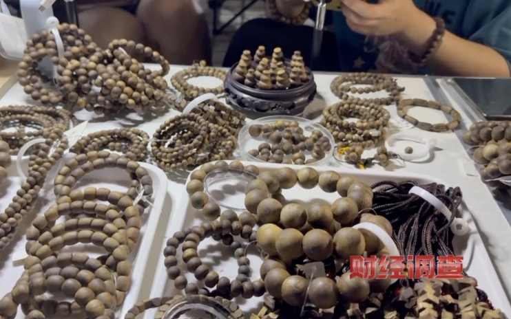 ▲市场上的“沉香手串”。图/央视往事视频截图