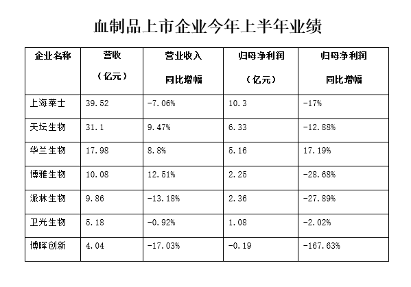 往年上半年,在政策向导以及临床需要的双重驱动下,凝血因子类产物市场快捷拦阻,与此同时,提供削减及政策影响给血液废品格业带来判断挑战。在医药板块子规模,去年同期功劳揭示最佳的血废品板块的7家上市公司,往年上半年功劳简直总体“跳水”,仅有华兰生物实现营收、净利润双削减;博晖立异归母净利润下滑幅度最大,抵达了167.63%;上海莱士、天坛生物、博雅生物、派林生物归母净利润则泛起两位数下滑;卫光生物归母净利润微降2.02%。不内行业龙头企业上海莱士以为,部份来看,短期政策扰动并未更正行业临时削减趋向。