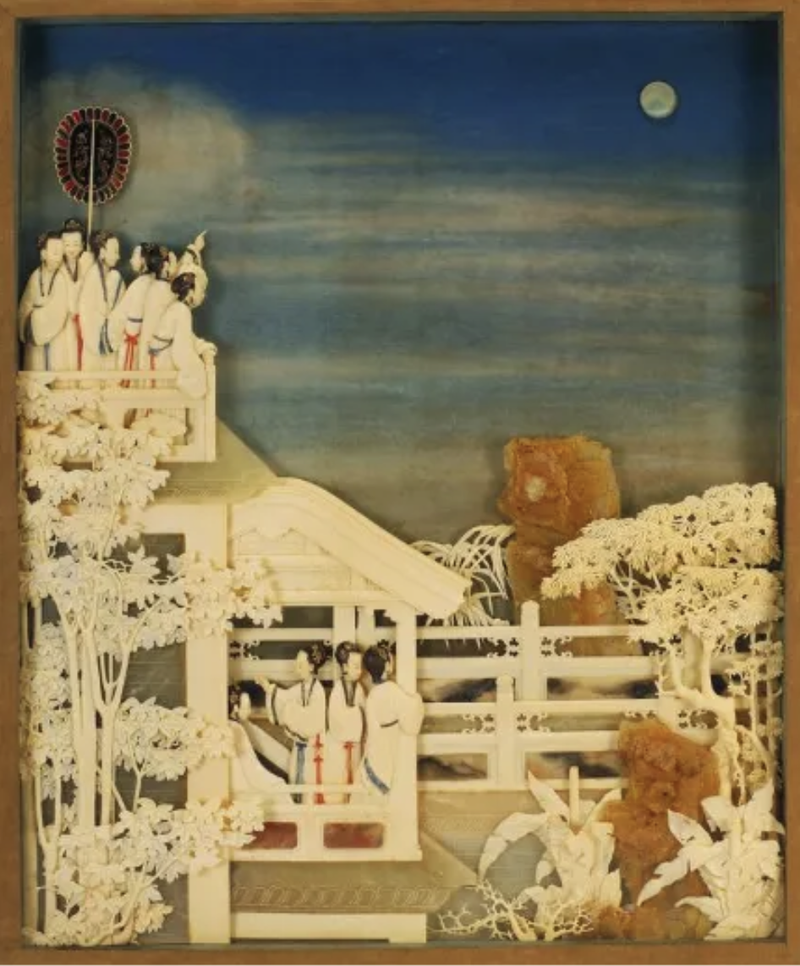 故宫藏象牙雕《月曼清游图》之“琼台玩月”。《故宫生涯志》插图