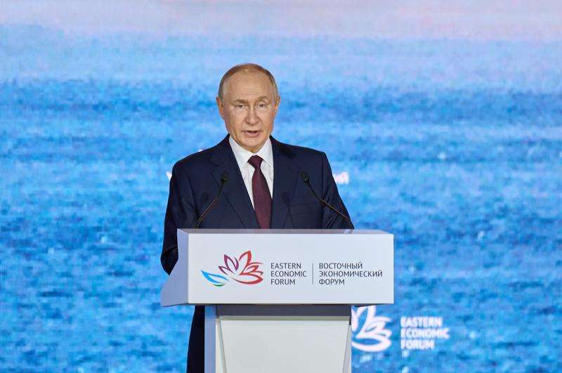 9月5日,俄罗斯总统普京在符拉迪沃斯托克出席第十届西方经济论坛部份团聚时宣告发言。新华网发(郭飞洲摄)
