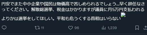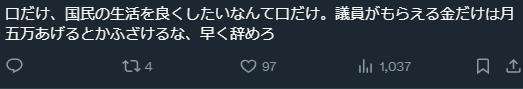 帖文大意:只会空谈改善夷易近生,却给议员每一个月涨5万(日元)酬谢,太荒唐了,赶紧告退!