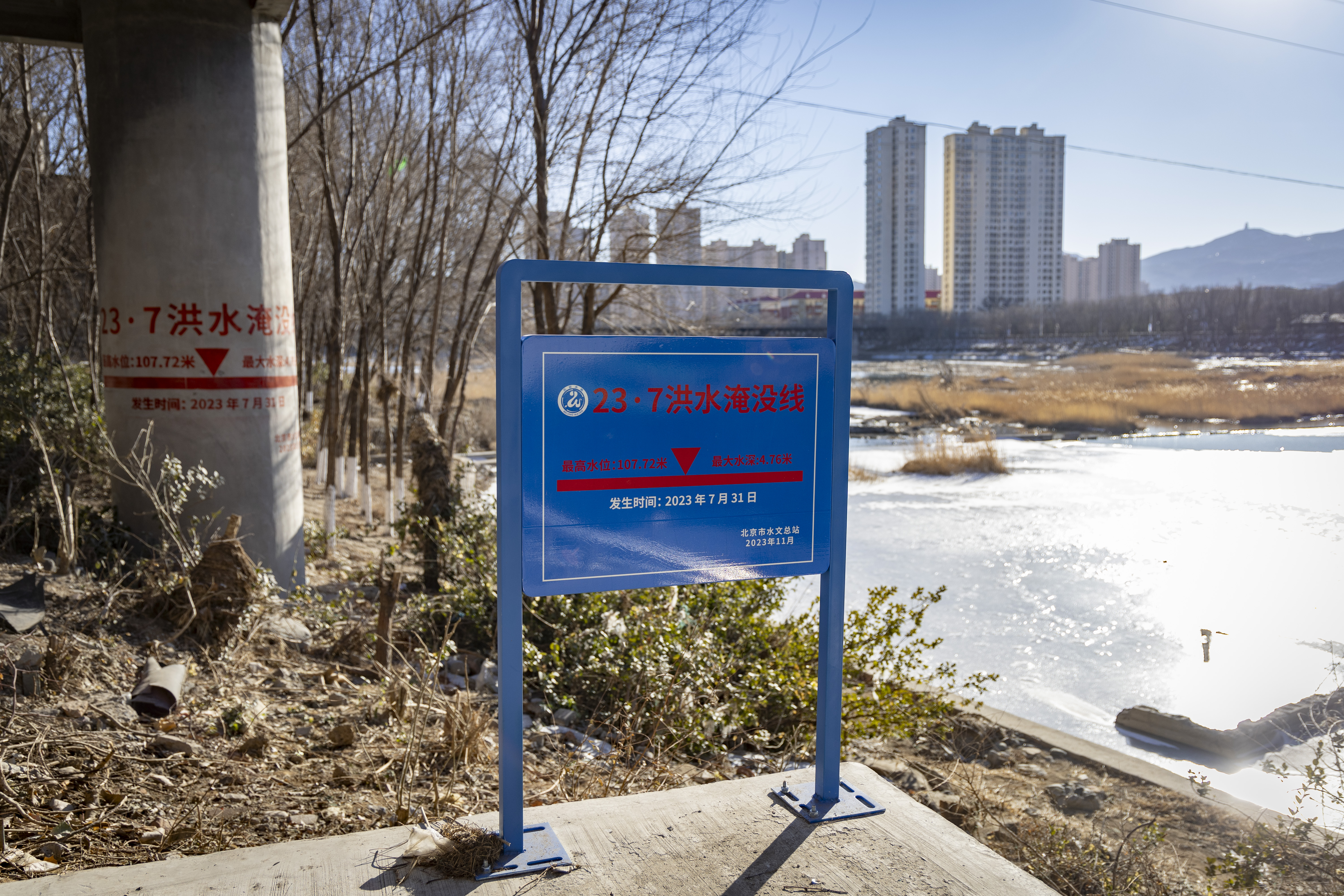 三家店水文站磨难断面,急流水位沉没线记实牌。往事