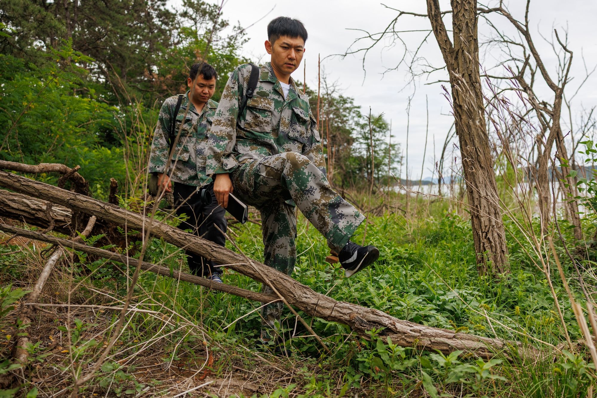 6月16日,密云水库,风雨赵铭靓以及共事逾越倒伏树木,水库上巡视的幼鸟道路大多不路。