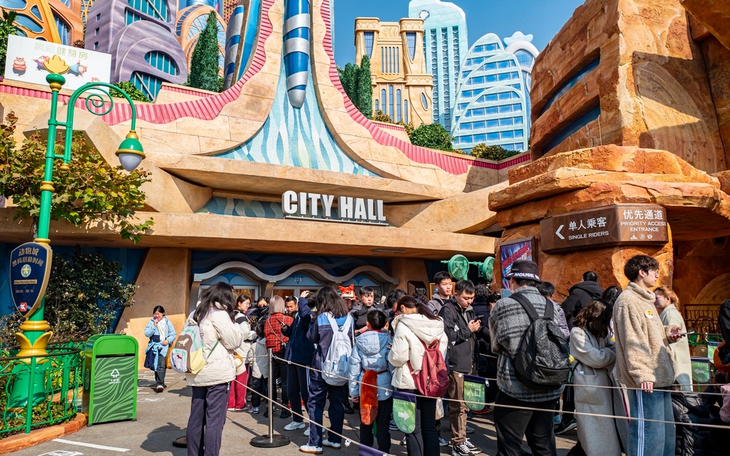 ▲游客在迪士尼热力追踪名目门前排队。图/IC photo