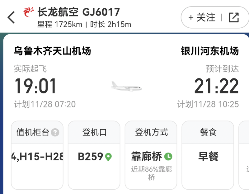 11月28日,GJ6017航班延迟超10小时。航旅纵横截图