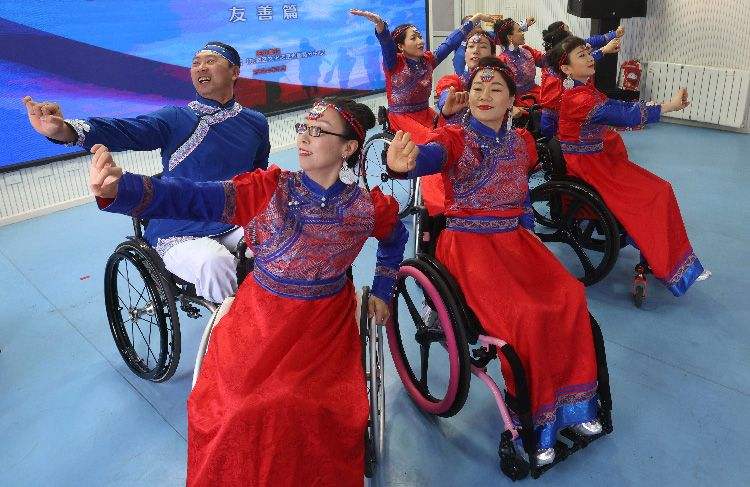 5月17日,东城区培智中间学校,心之源轮椅舞蹈队在天下助残日横蛮被迫功能慰问演出主题行动上饰演舞蹈《站在草原望北京》。