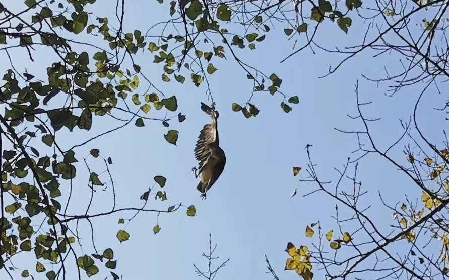 夜鹭被渔线缠住困在树枝上。图源:房山警方