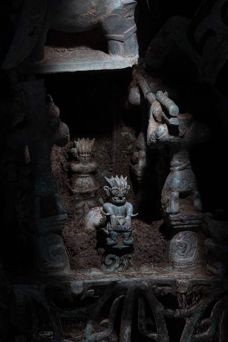 除了“机械狗”铜巨型神兽,新发现里尚有“裹裙坎肩大背头”的铜立人像、铜戴象牙立人像等数件造型配合的青铜器,有些器物是考古史上的初次发现。