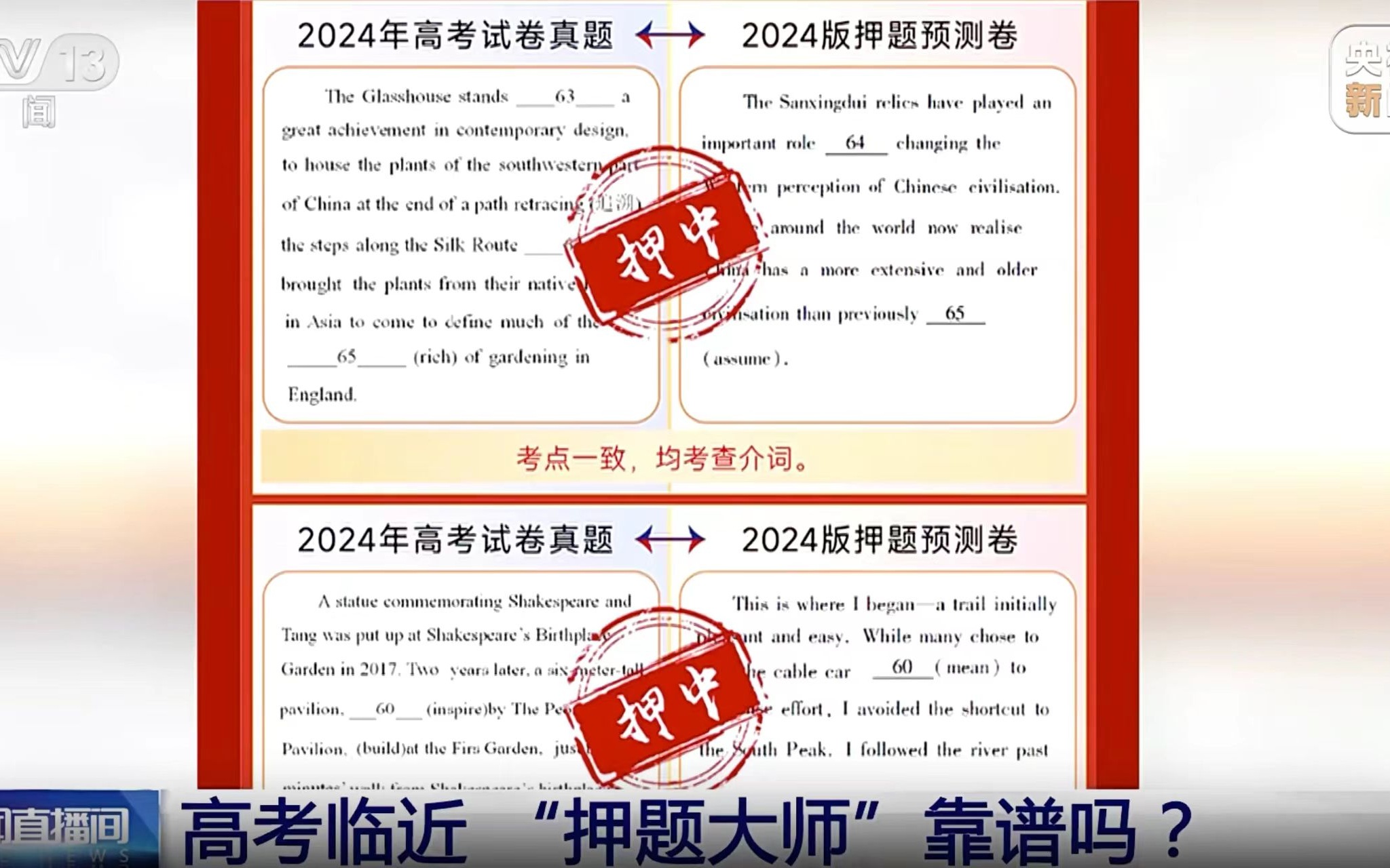 ▲“高考押题热”实则是走向了教育反面。图/央视截图