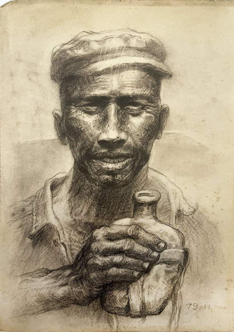 《父亲》系列手稿,纸本素描,22 × 30 cm,1979。 今世唐人艺术中间供图