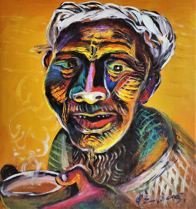 座落于四川北部的大巴山,不光夷易近俗浑朴,也孕育出了极为丰硕多彩的民间艺术:年画、剪纸、刺绣、石刻、泥塑、木雕等,不断深深罗致着罗中立,那些夸诞变形的方式、简洁爽快的语言、幽默浪漫的情调、恣肆随意的本领,让他久久不能淡忘。随着对于民间艺术营养的不断罗致,罗中立的绘画也在逐渐爆发变更。他试验用光线光线的颜色、夸诞的造型、粗豪的笔触,以及中国书法用笔的方式,抒写本夷易近意中的向往,对于中国村落子子以及农人的形貌逐渐也从总体以及详细抽象塑造,转向总体的关注以及抽象的表白。