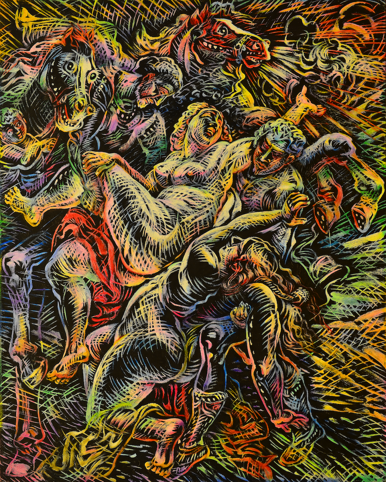 《重读美术史-鲁本斯·强劫留西帕斯的女儿》,布面油画,250 × 200 cm,2014 。 今世唐人艺术中间供图