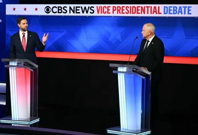 △万斯(左)与蒂姆·沃尔兹(右)退出副总统辩说